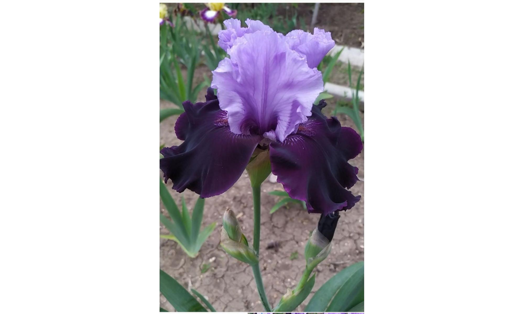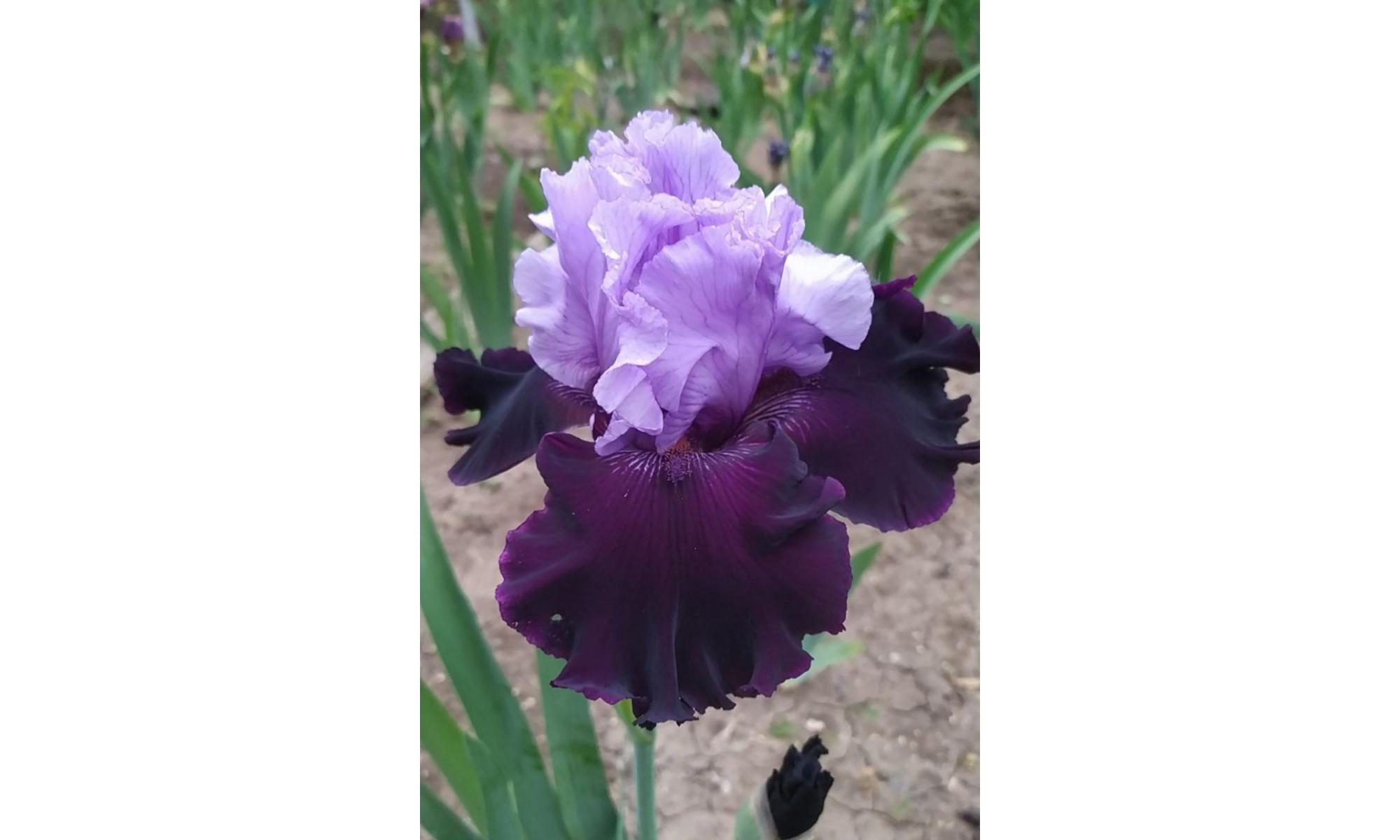 T.JOHNSON - 2017. Стандарты лавандовые. Фолы плюшевые, черно-фиолетовые с темно-коричневой бородкой. Гофрированный, шикарный цветок. Средне-позднего срока цветения. Высота до 90 см.