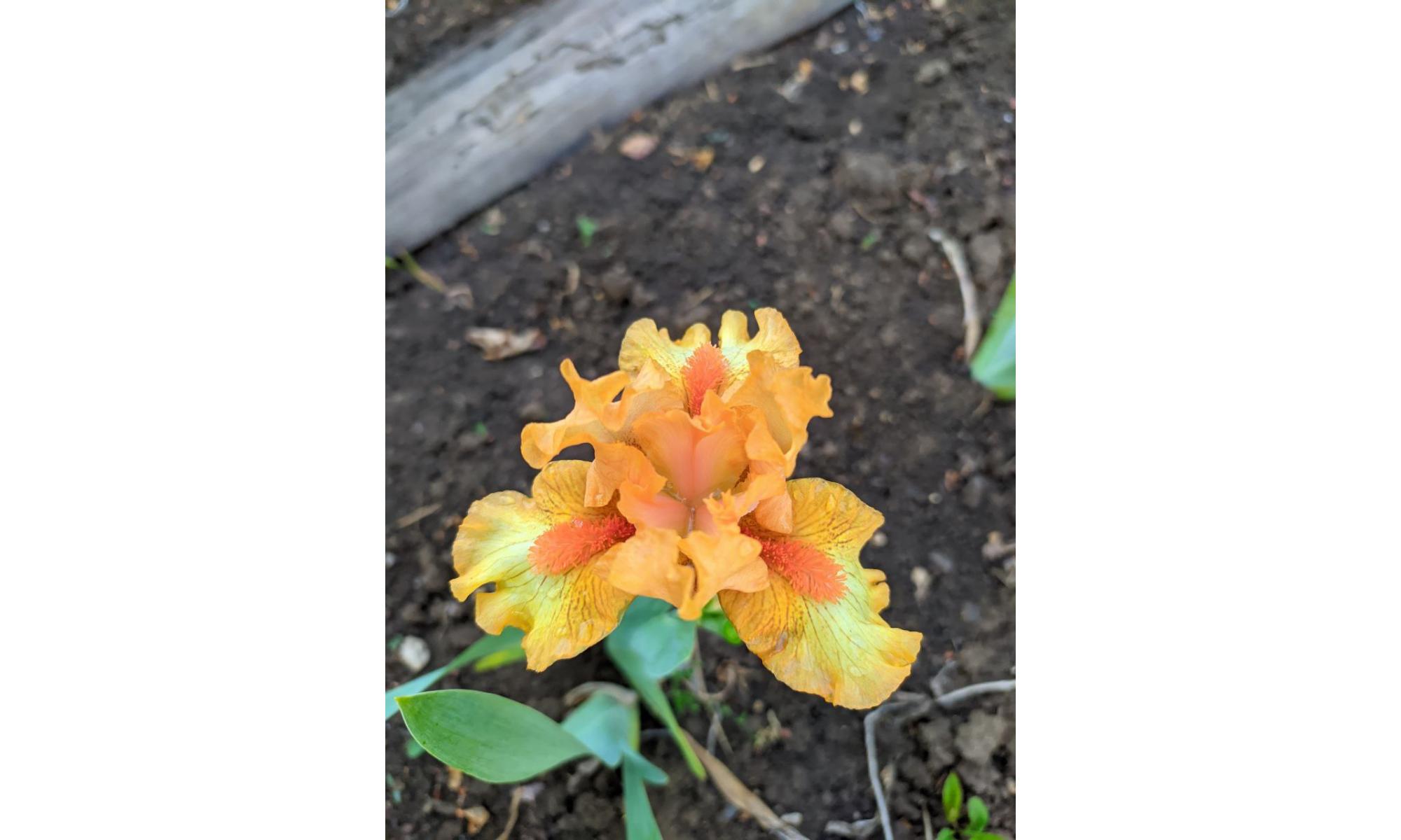 Стандарты оранжевого цвета. На светло-желтых фолах ярко-оранжевая пликата. Бородки мандариновые. Гофрированный. Высота до 30 см.